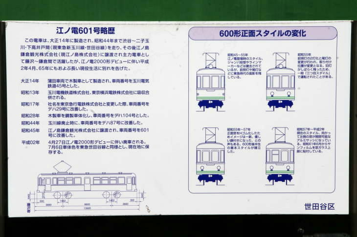 | 宮の坂駅には里帰りした江ノ電601形(元玉電デハ104号)が展示されていました |